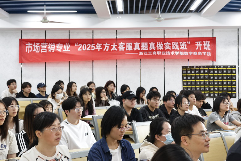 2025年4月23日,浙江工商职业技术学院与方太集团联合举办的“2025年方太客服‘真题真做’实践班”开班仪式隆重举行。此次合作是双方继2024年成功实践后的进一步深化,标志着校企合作在产教融合与人才培养方面迈入新阶段。市场营销专业58名学生将参与为期近两个月的实践学习,通过真实业务场景提升职业技能与数字素养。